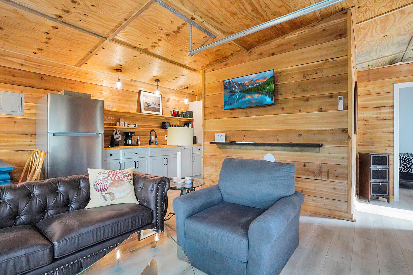 The South Cottage on the shoreline of Pungoteague Creek is a perfect place to take in the views and breeze. The cedar plank walls and a garage door connect you with the eastern shore's natural beauty. The cottage is tastefully appointed with a well stocked kitchenette, custom cabinetry and pendant lighting. There are 2 beds, 1 Queen, 1 double. HVAC and strong WIFI.