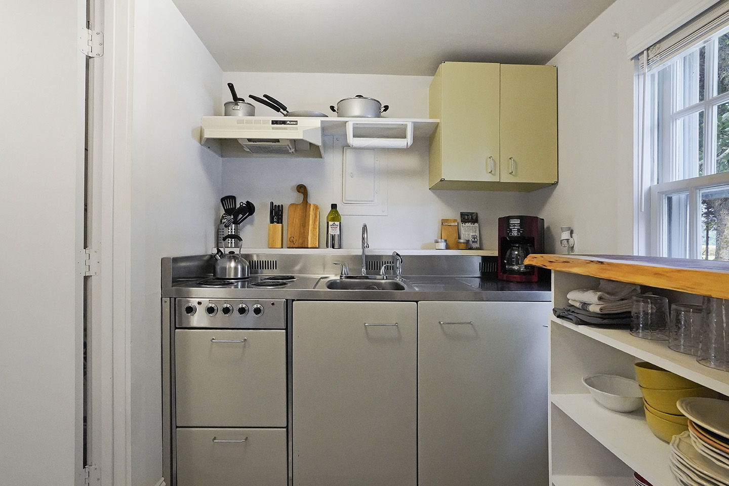 The Weaver's Cottage has been renovated into a two-room cabin complete with kitchenette and full bathroom.